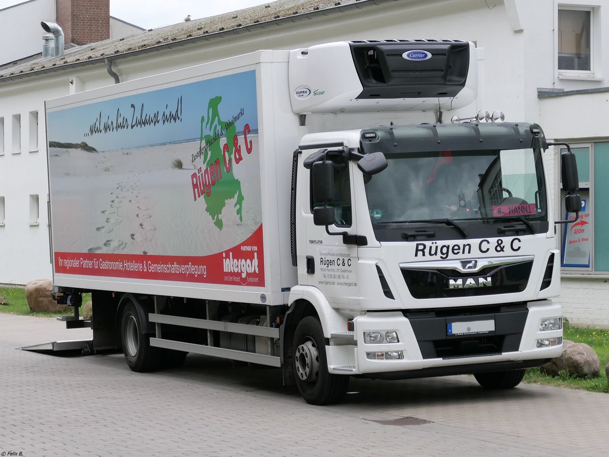 MAN TGM 15.250 mit Kastenaufbau im Stadthafen Sassnitz.